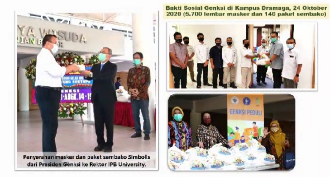 Untuk menjembataninya diadakan online silaturahmi melalui webinar dengan mengangkat topik Covid 19, mengenal dan cara mengatasinya pada tanggal 27 September 2020 dan dilanjutkan dengan bakti sosial dilingkungan kampus IPB, Dramaga Bogor.